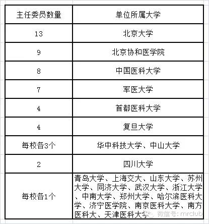 來自于北京大學(xué)、北京協(xié)和醫(yī)學(xué)院和中國醫(yī)科大學(xué)的主任委員數(shù)量名列前三。