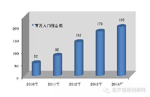圖1-3 2010-2014年全國(guó)百萬(wàn)人口報(bào)告數(shù)量比較