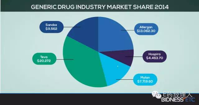 制藥行業從來沒有像這樣的并購:分分鐘上演悲喜愛情戲碼,悄悄然改變仿制藥市場競爭格局。對于一直期冀進軍全球仿制藥行業的中國企業,梯瓦坐穩仿制藥霸主寶座給了我們哪些提示?綜合公司公告、Fiercepharma、Bidnessect是一個嚴肅的并購故事。7月27日,以色列仿制藥企業梯瓦宣布以405億美金的價格收購艾爾建公司仿制藥業務。其中,現金支付337.5億美金,其余價值67.5億美金以股票支付。 此舉將鞏固梯瓦在仿制藥領域的霸主地位:2014年梯瓦仿制藥業務為公司貢獻202.7億美金(數據來自彭博),占全球仿制藥市場的36.8%,遠超仿制藥業務位列第二、三、四位的艾爾建、山德士和邁蘭。此次拿下艾爾建仿制藥業務,梯瓦在仿制藥領域的市場份額將毫無懸念地超過半數。“預計三年內,公司將實現14億美金的成本協同節約,2016年保持兩位數增長,第二、第三年的non-GAAP EPS增長在20%以上”,梯瓦公告如是披露。并購要約將在梯瓦15日內成功融資后生效。