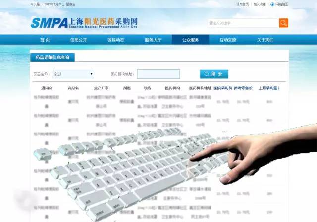 聽說了沒?無論你在不在上海,只要敲敲鍵盤,就能看到本市公立醫院和醫保定點醫院采購藥品的價格,輸入藥品通用名,馬上會顯示該藥品各生產企業在不同醫藥機構采購價格、銷售價格、開戶情況,如果是基藥還可以顯示采購明細,還是免費的哦!
