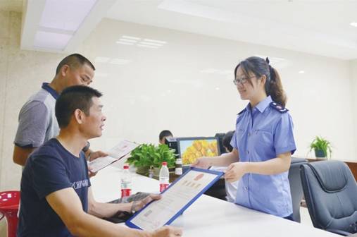 今年,區(qū)政府出臺 “三證合一”的具體實(shí)施辦法,區(qū)審管辦等部門加速“三證合一”政策落地。“三證合一”采取“一窗”受理模式,率先在鄞州區(qū)行政服務(wù)中心試點(diǎn),企業(yè)只需在市場監(jiān)管窗口遞交工商登記申請材料。如材料齊全,申請人最快兩天、最晚五天即可領(lǐng)取營業(yè)執(zhí)照;為避免群眾多跑腿,執(zhí)照也可以通過快遞郵寄方式送到申請人手中。