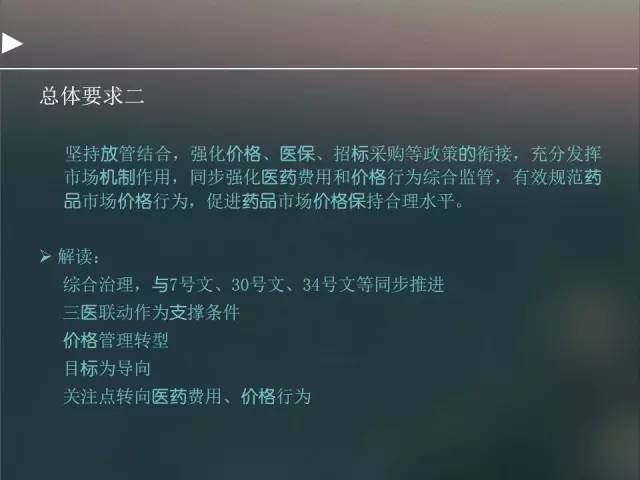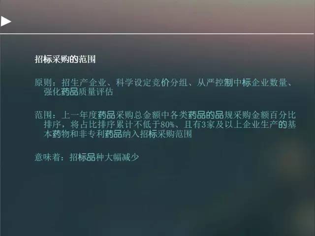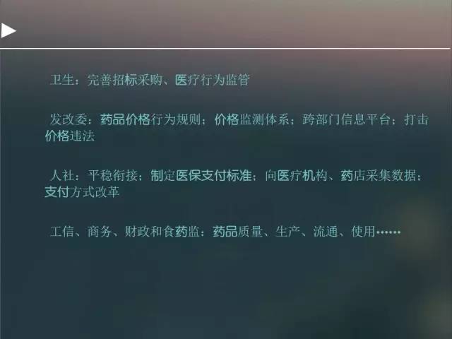 醫(yī)保支付標(biāo)準(zhǔn)政策與招標(biāo)形成新的二元定價機制,招標(biāo)定準(zhǔn)入、醫(yī)保爭份額,事關(guān)藥品市場格局調(diào)整。企業(yè)應(yīng)根據(jù)政策的走向,結(jié)合自己實際,做好準(zhǔn)備。
