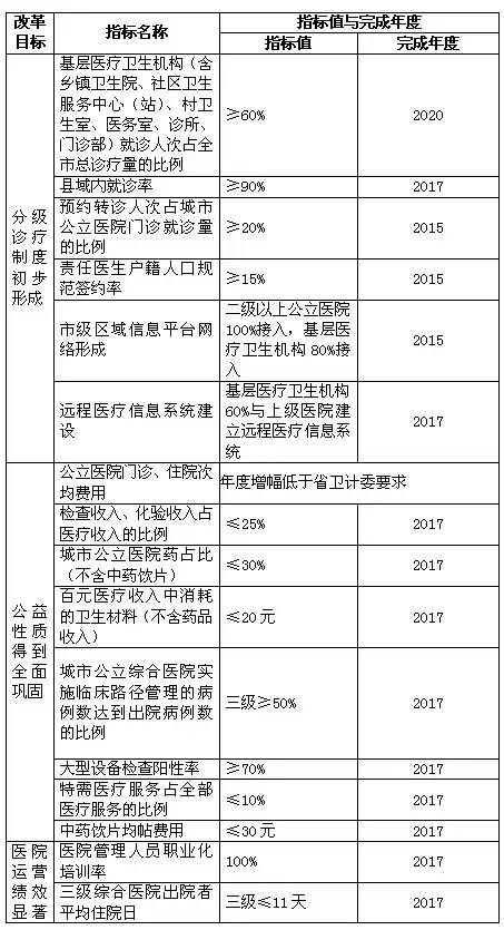 溫州市公立醫院改革重點指標一覽表