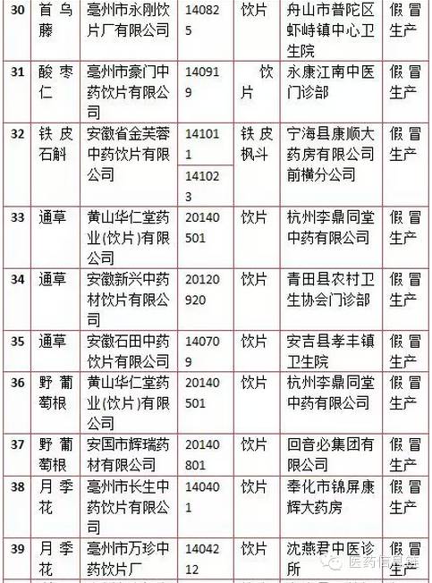 一、抽樣檢驗不符合標準規定且假冒標示生產單位生產的假藥:有44批次,43批次為中藥飲片。
