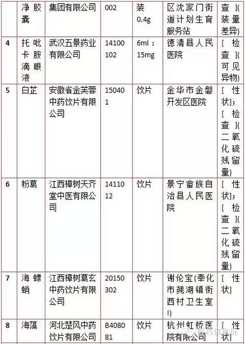 為加強藥品質量監管,保障公眾用藥安全,浙江省藥監局組織全省各級市場監管(食品藥品監管)部門開展藥品抽驗。根據2015年第2季度全省藥品抽驗情況,現將抽驗發現的不合格藥品予以公告。