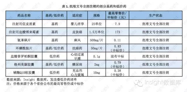 以下是批文全部注銷(xiāo)的部分基藥和低價(jià)藥: