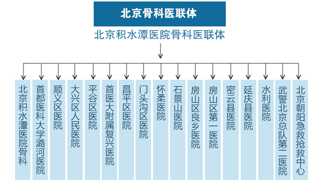 2014年4月27日,北京積水潭醫院骨科醫聯體在京成立,這是北京市組建的首個以學科為載體“醫聯體”。 此次成立的骨科醫聯體,以北京積水潭醫院骨科七個亞科為龍頭,其余16家醫院骨科為其成員。