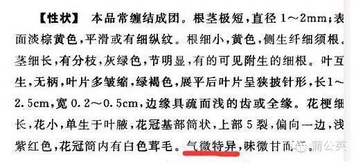 藥典一部117頁半邊蓮藥材性狀項下“氣微特異,味微甘而辛”,而在其飲片性狀項下“氣味特異,味微甘而辛”