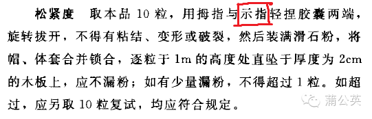 2015版藥典四部中P522“明膠空心膠囊”的【檢查】“松緊度”中“用拇指與食指”,貌似刊印成“示指”了,對嗎?