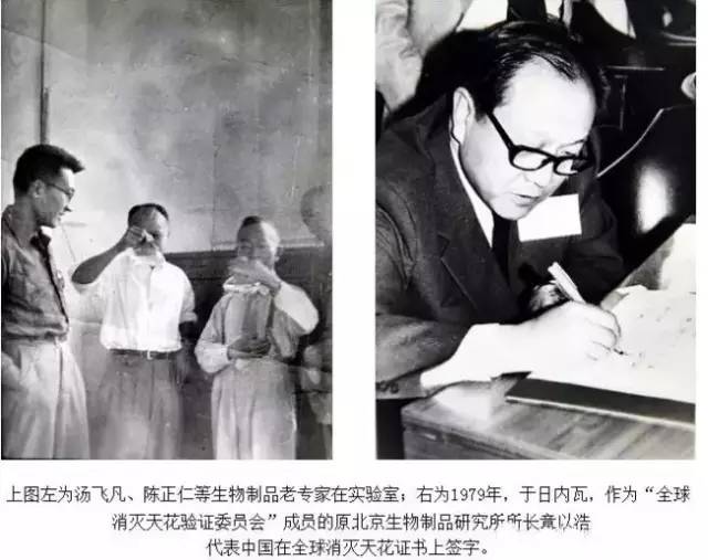 1979年,前所長章以浩研究員作為全球消滅天花驗證委員會的成員參加了日內瓦會議,并代表中國莊嚴地在"全球消滅天花證書"上簽字。