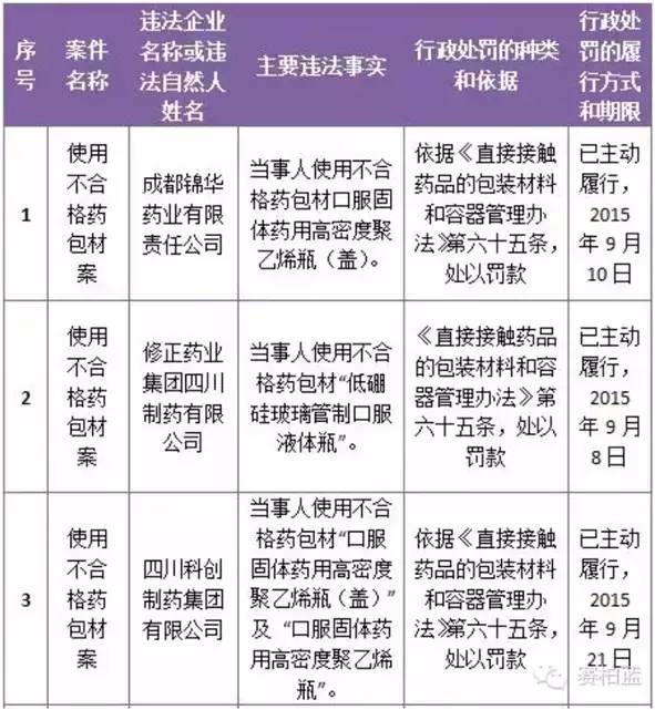 其中,3家藥企被被查出使用不合格藥包材,分別是修正藥業(yè)集團(tuán)四川制藥有限公司、四川科創(chuàng)制藥集團(tuán)有限公司、成都錦華藥業(yè)有限責(zé)任公司。
