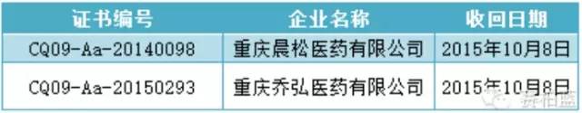 重慶晨松醫(yī)藥有限公司等2家藥品批發(fā)企業(yè)嚴(yán)重違反《藥品經(jīng)營質(zhì)量管理規(guī)范》,存在嚴(yán)重質(zhì)量風(fēng)險(xiǎn)。為加強(qiáng)風(fēng)險(xiǎn)防控,依據(jù)《藥品醫(yī)療器械飛行檢查辦法》(國家食品藥品監(jiān)督管理總局令第14號(hào))第二十五條規(guī)定,我局依法收回其《藥品經(jīng)營質(zhì)量管理規(guī)范認(rèn)證證書》。