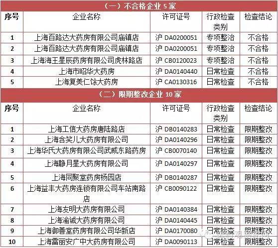 導讀上海市藥監局今日分別公布了9月份關于藥品批發(連鎖)企業和藥品零售企業行政檢查信息的通告。其中,5家藥品零售企業不合格,10家藥品零售企業要求限期整改。