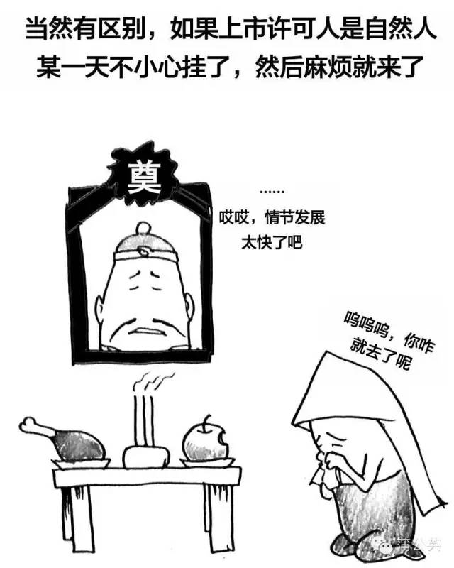 上市許可人制度,看似越來越接近了。上海設立CDE分中心,四大任務之一便是推進創新藥物上市許可人制度。仔細想想,上市許可人制度是非常不錯的制度,有利于行業整合,有效利用資源,可以讓企業之間形成多種合作關系。但……再仔細想想,如果真是自然人持證,會不會引發一系列有趣的問題?比如說:持有人去世怎么辦