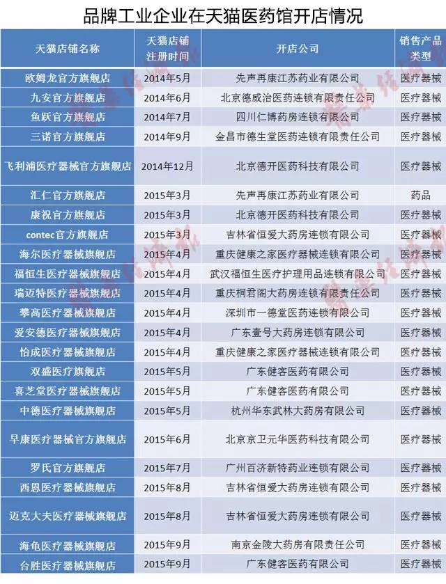 從2014年起,開始有品牌工業(yè)企業(yè)(品牌醫(yī)療器械生產(chǎn)企業(yè)或品牌藥品生產(chǎn)企業(yè))和連鎖藥店合作,在天貓建立官方旗艦店。按照國家食品藥品監(jiān)督管理總局的規(guī)定,在網(wǎng)上直接銷售藥品和醫(yī)療器械需要多種經(jīng)營資質(zhì),而且必須有完善的安全保障制度、配送制度等,而在天貓醫(yī)藥館開店的連鎖企業(yè)早已能符合相關(guān)規(guī)定。因此促使不少知名品牌企業(yè)和連鎖企業(yè)緊密合作,既能規(guī)避政策要求,又能節(jié)省時間、成本,快速進入電商領(lǐng)域。