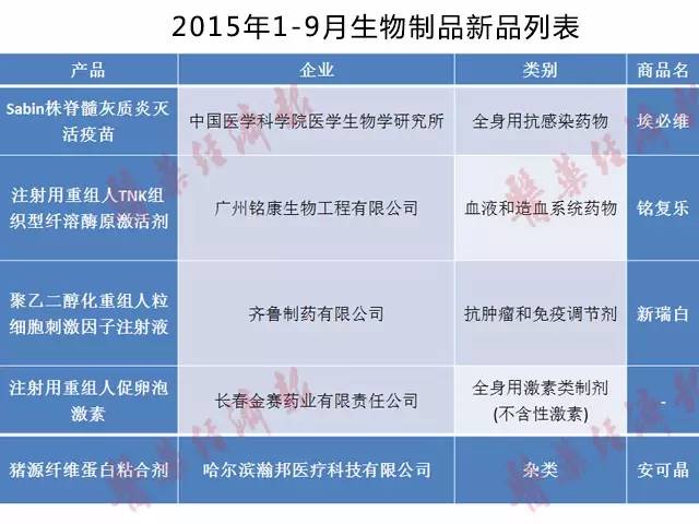 2015年1-9月,生物制品新批文共13個,其中5個為全身用抗感染藥物。