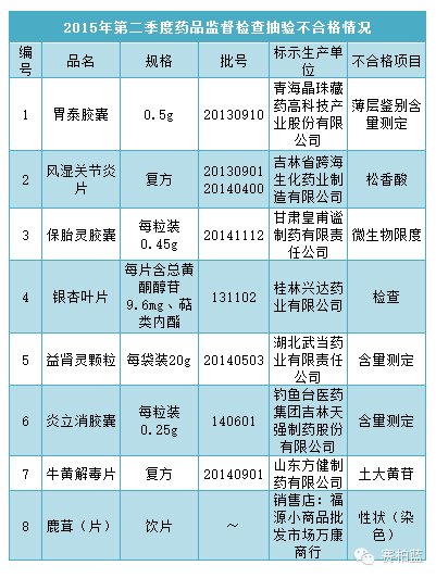 上海市藥監局發布了《2015年第二季度藥品監督抽驗質量公告》。