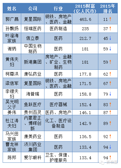 在醫藥行業中,此次共有14位醫藥富豪上榜,其中郭廣昌以463.6億元居于醫藥行業之首,其次是恒瑞醫藥的孫飄揚(235億元),葉澄海家族以212.7億元位于醫藥行業的第三名。