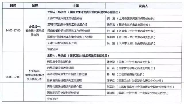 其二為國家衛計委藥政司副巡視員朱洪彪主持的《集中采購配套政策及影響分析》,論壇內容包括藥品集中采購新機制等。