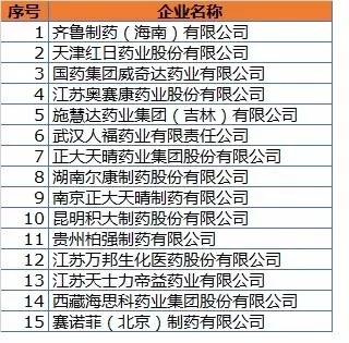2015中國制藥企業綜合實力百強名單