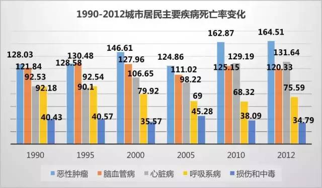 醫學界智庫 死亡率(1/10萬) 數據來源:2013中國衛生統計年鑒