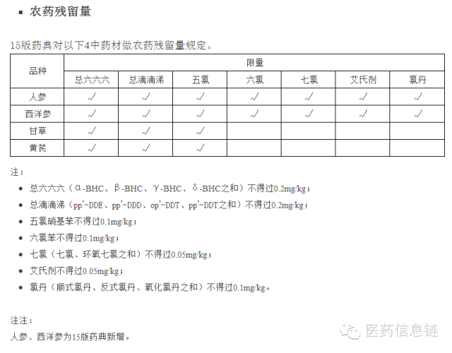 4. 制定了中藥材及飲片中二氧化硫殘留量限度標(biāo)準(zhǔn),建立和完善重金屬及有害元素、黃曲霉毒素、農(nóng)藥殘留量等物質(zhì)的檢測限度標(biāo)準(zhǔn)。