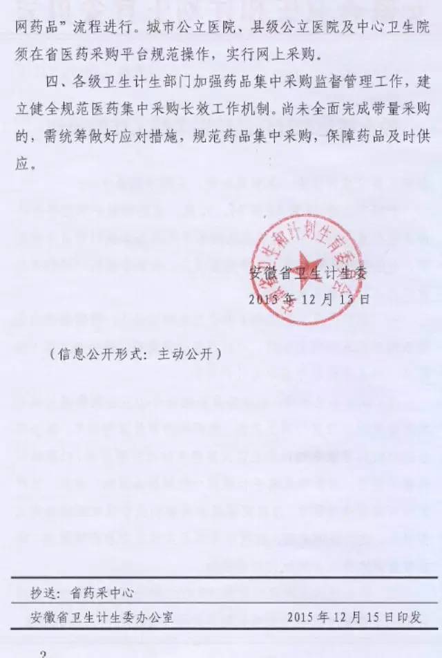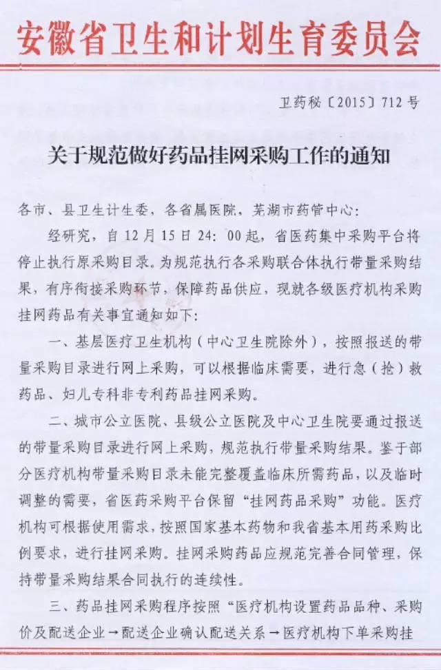 12月15日之后2008年、2010年、2012年招標產品在2014年安徽大基藥標內且沒中標的;沒有納入帶量采購中標結果的,12月16日起將全部停止采購。