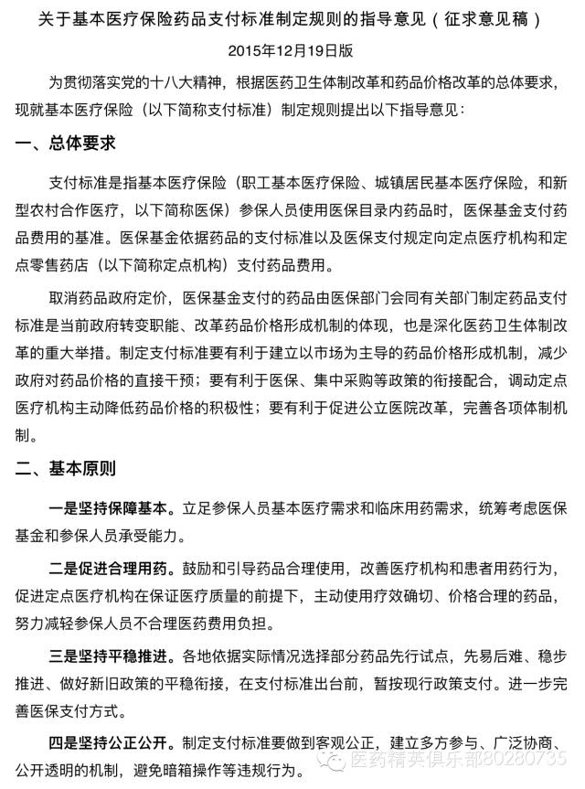 關于基本醫(yī)療保險藥品支付標準制定規(guī)則的指導意見(征求意見稿) 2015年12月19日稿