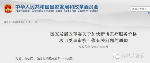 國家發(fā)展改革委關(guān)于加快新增醫(yī)療服務(wù)價格項目受理審核工作有關(guān)問題的通知發(fā)改價格[2015]3095號