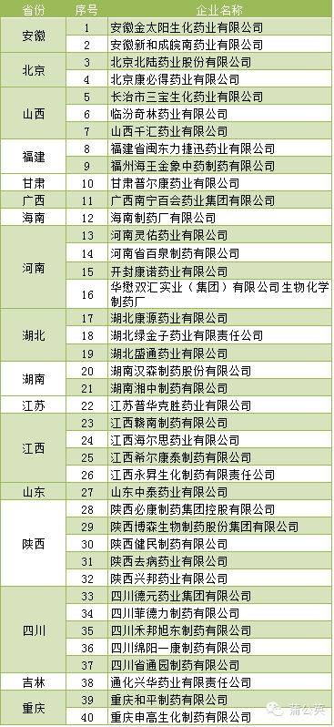 重慶市全新祥盛生物制藥有限公司生產(chǎn)的枸櫞酸鐵銨銷往17省(直轄市)40家藥品生產(chǎn)企業(yè),蒲公英整理匯總?cè)缦?/span>: