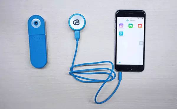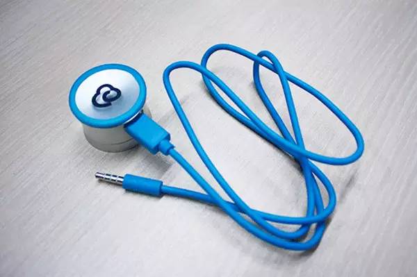聽診器并沒有像體溫計那樣采用藍牙通信的方式,而是采用傳統的有線模式,通過一根高保真數據線將聽診器與連接手機。之所以采用這種方式,估計是為了保證音頻的準確性(采用藍牙方式會在一定程度上導致音頻失真),可見設計者的匠心精神。