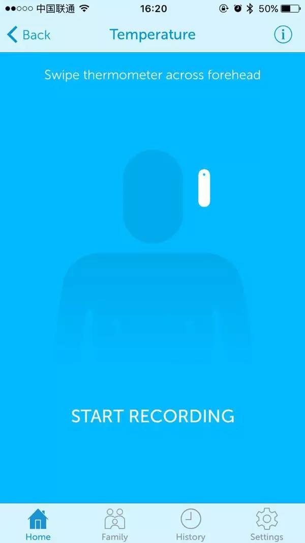 體溫計采用了一顆與機場疾病安檢設備類似的紅外感應器探頭(其主要通過測量額頭顳淺動脈血管的溫度)。只需要根據軟件提示,輕輕在額頭上方掃一掃,便可即時獲取體溫數據。
