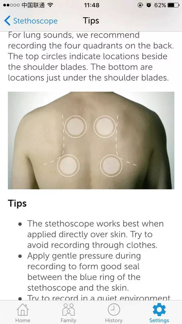 不過,有一點仍要說(tu)道(cao)一下,可能是聽診器設計的緣故,在聽診的過程中,聽診人不能實時的通過手機聽筒對聽診位置進行定位。而只能通過錄制到手機中的音頻來判斷聽診器是否放對位置,在一定程度上,增大了新手在正確尋找聽診位置的難度(特別是當聽肺音時)。