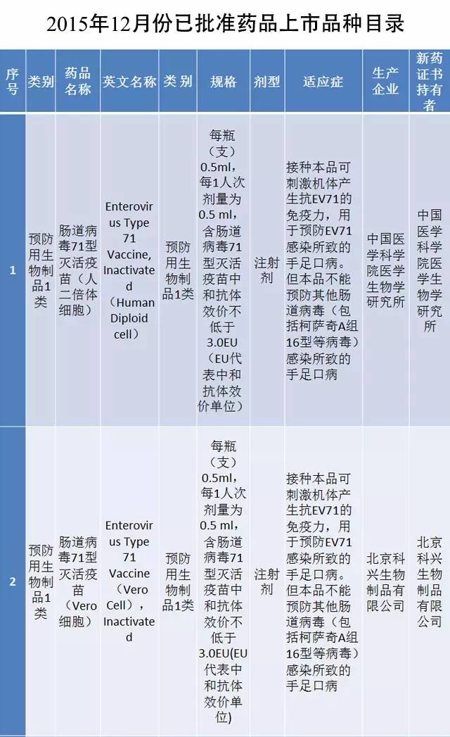 1月15日,CFDA官方網站發布《國家食品藥品監督管理總局批準上市藥品公告》,公告稱2015年12月份共批準藥品上市申請13件,其中,國產化學藥品8件,生物制品2件;進口化學藥品2個,生物制品1件。