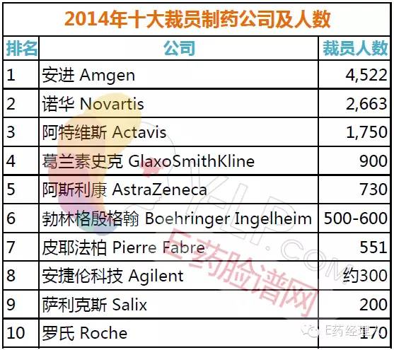 2014年,臉譜君曾經總結了當年的裁員年報,包括了裁員人數居前的十大制藥公司。