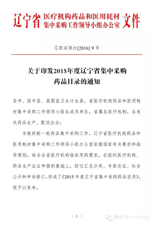 《2015年度遼寧省集中采購藥品目錄》今日公布(附下載)