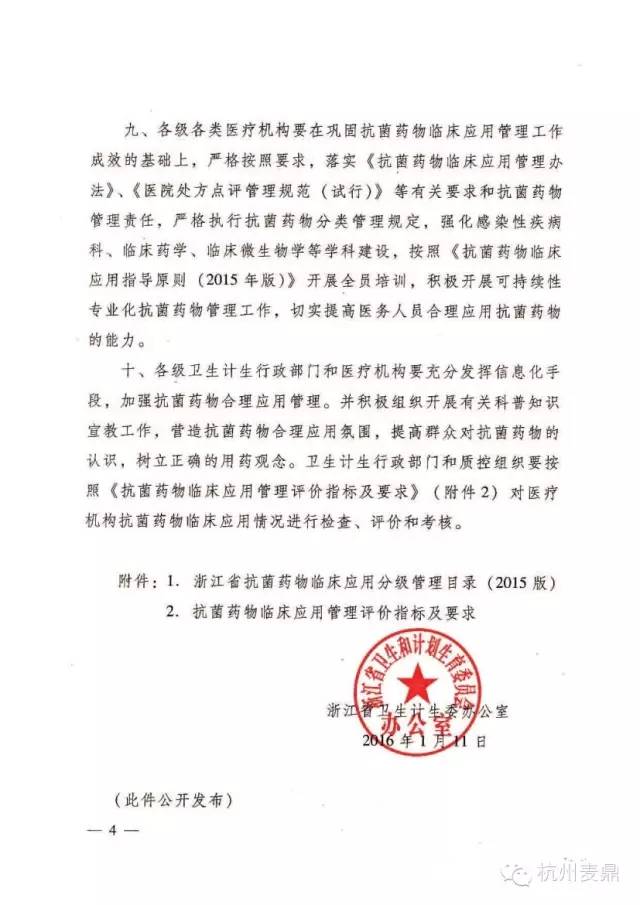 《浙江省衛生計生委辦公室關于加強抗菌藥物臨床應用分級管理工作的通知》