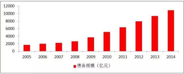 圖1:2005-2014年公立醫(yī)院債務(wù)規(guī)模增長情況