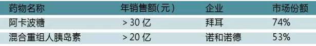 阿卡波糖是拜耳的產(chǎn)品,屬α-葡萄糖苷酶抑制劑,在歐美市場反應(yīng)一般,但在中國市場空前成功,連續(xù)多年排名國內(nèi)糖尿病市場第一名,其原因可能與飲食習(xí)慣有關(guān)。有研究發(fā)現(xiàn)阿卡波糖主要降低餐后高血糖,如果使用者飲食中碳水化合物占50%以上,則降糖效果更為明顯,因此阿卡波糖適用于以碳水化合物為主食的人群。市場以拜耳占優(yōu)勢已經(jīng)多年,國內(nèi)有杭州中美華東及四川綠葉寶光生產(chǎn)片劑、咀嚼片和膠囊。