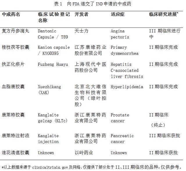 ①為國內已上市多年的產品,多為中藥大品種。臨床應用經驗豐富,安全性和有效性得到充分驗證,不良反應信息較為全面。因此,得到FDA批準進行臨床試驗的可能性大。