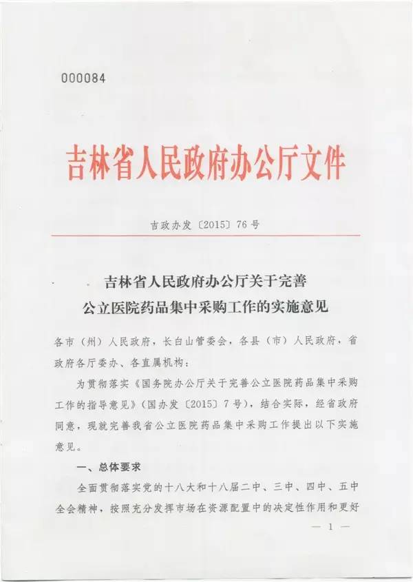 吉林關(guān)于完善公立醫(yī)院藥品集中采購(gòu)工作的實(shí)施意見(jiàn)