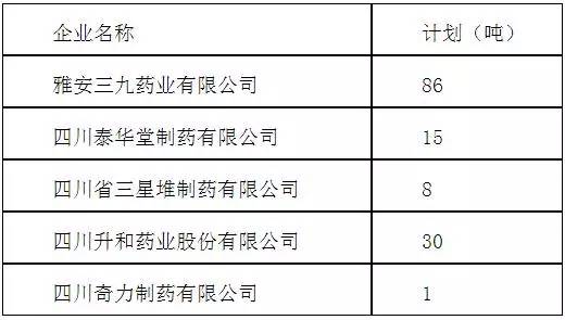 四川省藥用罌栗殼需用計劃共160噸,具體分解如下: