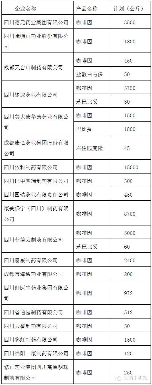 四川峨嵋山藥業股份有限公司,需用阿片酊量為3065立升。供應單位:西南藥業股份有限公司。