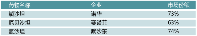 氯沙坦是世界第一個沙坦類藥物,是FDA于1995年批準的新分子實體,商品名“科索亞”;厄貝沙坦于1997年獲批,是賽諾菲-安萬特的產品,商品名為“安博維”;纈沙坦商品名為“代文”,1996年獲得FDA批準。目前三個沙坦類在國內外均有多家企業生產。