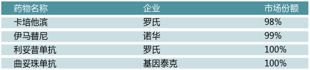 由于國內企業中有江蘇恒瑞、江蘇豪森、南京綠葉思科等致力于腫瘤等領域研發的國家級高新技術公司,在抗癌藥銷售市場并不輸于外企。米內網抗腫瘤藥企業格局數據顯示,銷售TOP 10企業中國企市場份額高于外企。