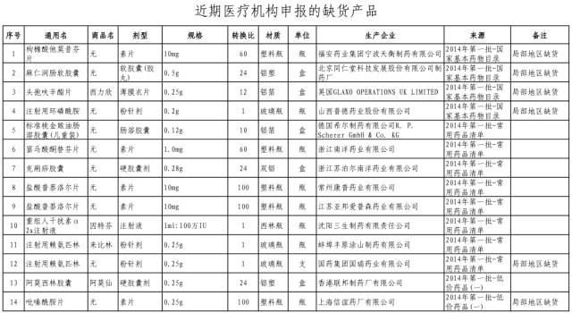 從浙江省藥械采購中心發布的通知來看,藥品短缺情況如下: