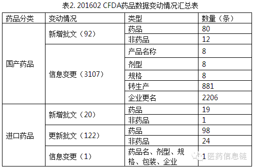 2016年3月份藥監(jiān)局藥品數據更新報告