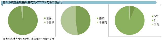 與城市及縣級公立醫院明顯不同的是,中成藥在基層醫療機構的使用比例更高,特別是鄉鎮衛生院醫療終端。城市公立醫院與縣級公立醫院的中成藥使用比例只有二至三成,而鄉鎮衛生院接近五成。