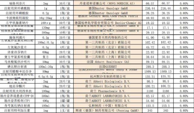部分外資、合資藥企省標價格與二次議價后的價格對比