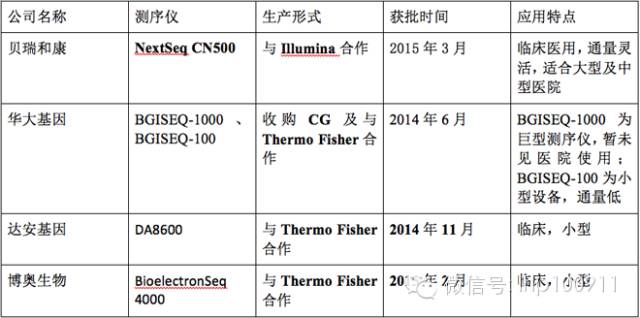 獲得CFDA批準上市的這四款測序儀,其中NextSeq CN500基因測序儀是貝瑞和康與美國Illumina公司合作,后者于2015年11月中旬被列入美國標普500指數,是當之無愧的行業龍頭。其他三款測序儀皆是與美國Thermo Fisher合作以Ion Proto 原理為基礎國產化的設備。